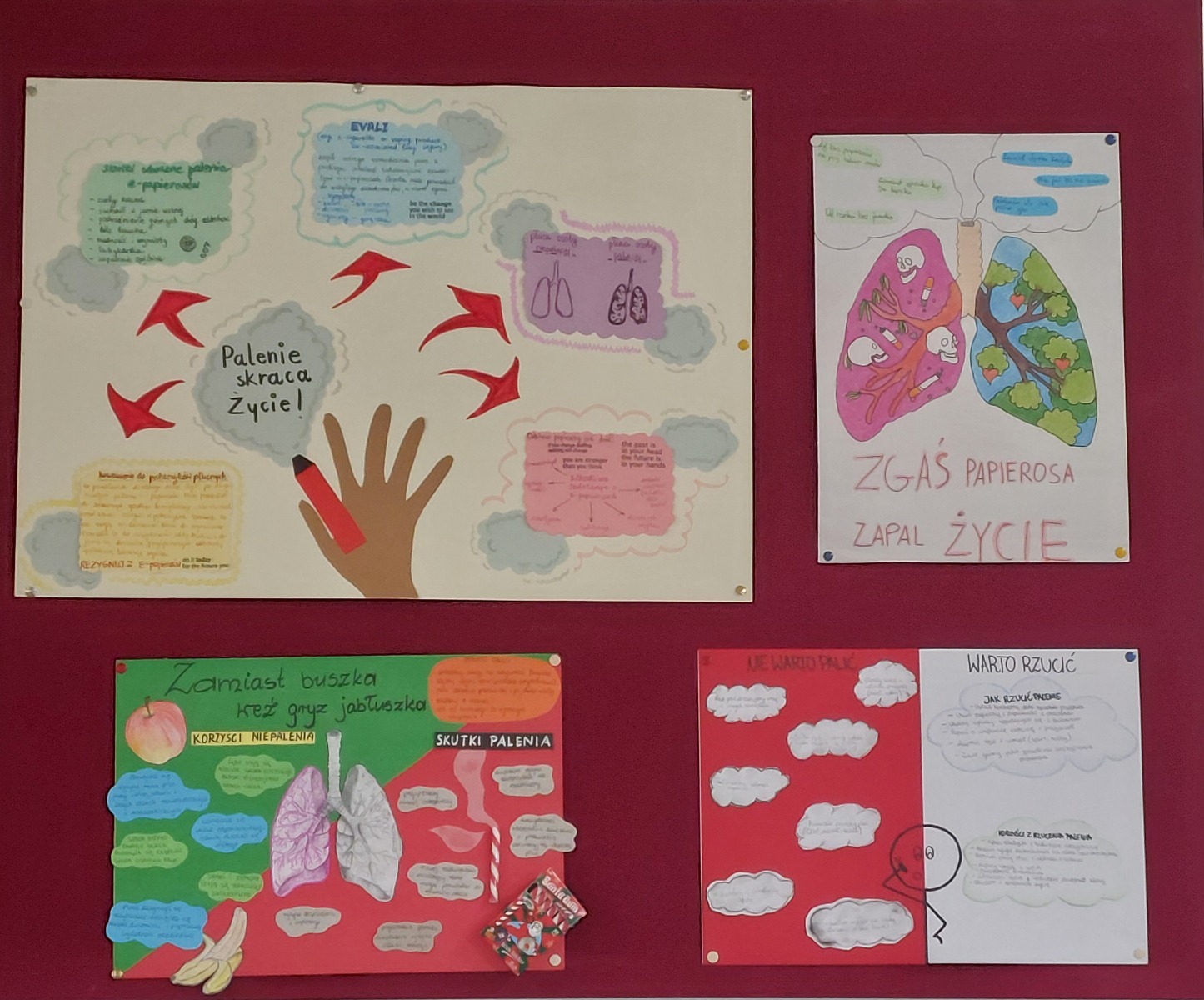 W ramach projektu uczniowie pracowali w grupach, tworząc autorskie kampanie reklamowe, które miały w kreatywny i przekonujący sposób ukazać zagrożenia wynikające z palenia tytoniu. Powstały:
