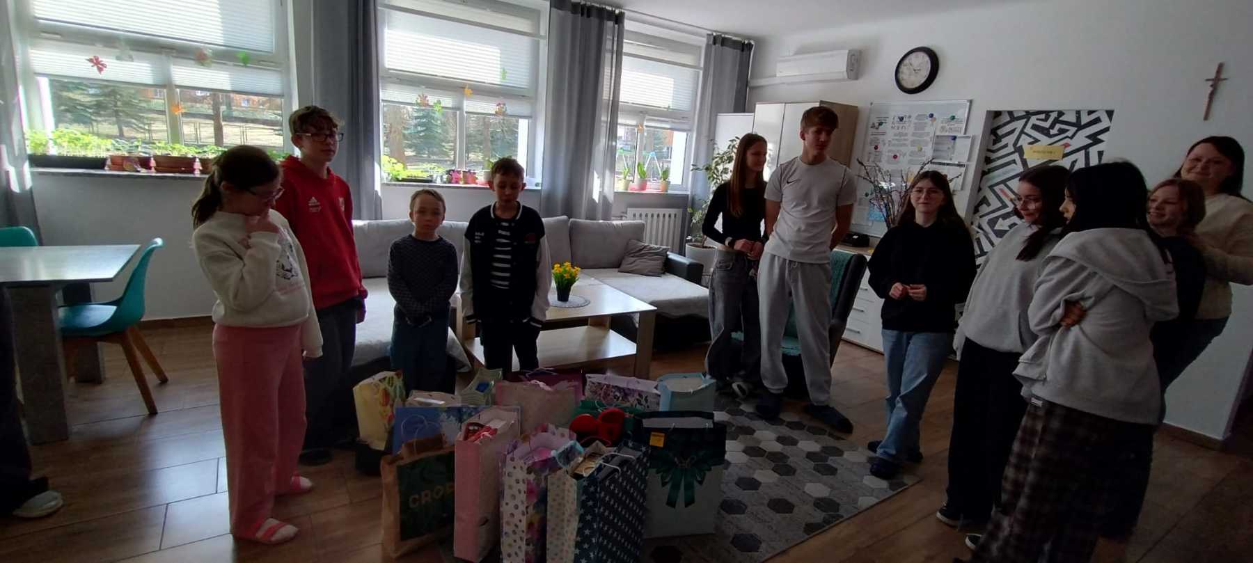 Nasza szkolna społeczność wykazała się wielkim sercem, biorąc udział w kolejnej akcji Szkolnego Wolontariatu. Tym razem postanowiliśmy wspomóc wychowanków Placówki Opiekuńczo-Wychowawczej nr 1 i nr 2 w Kraśniku (woj. lubelskie). Dzięki zaangażowaniu klas 1A, 1B, 1C, 1D, 1E, 2A, 2B, 2C, 3A, 3B, 3D, 3E, 3F, 4A, 4B i 4D oraz dzięki wsparciu rodziców i nauczycieli udało się zakupić indywidualny prezent dla każdego z trzydzieściorga wychowanków placówki. Prezenty zostały przekazane dzieciom tuż przed Wielkanocą, w poniedziałek 30 marca. Uśmiechy, które pojawiły się na ich twarzach na długo pozostaną w naszej pamięci.